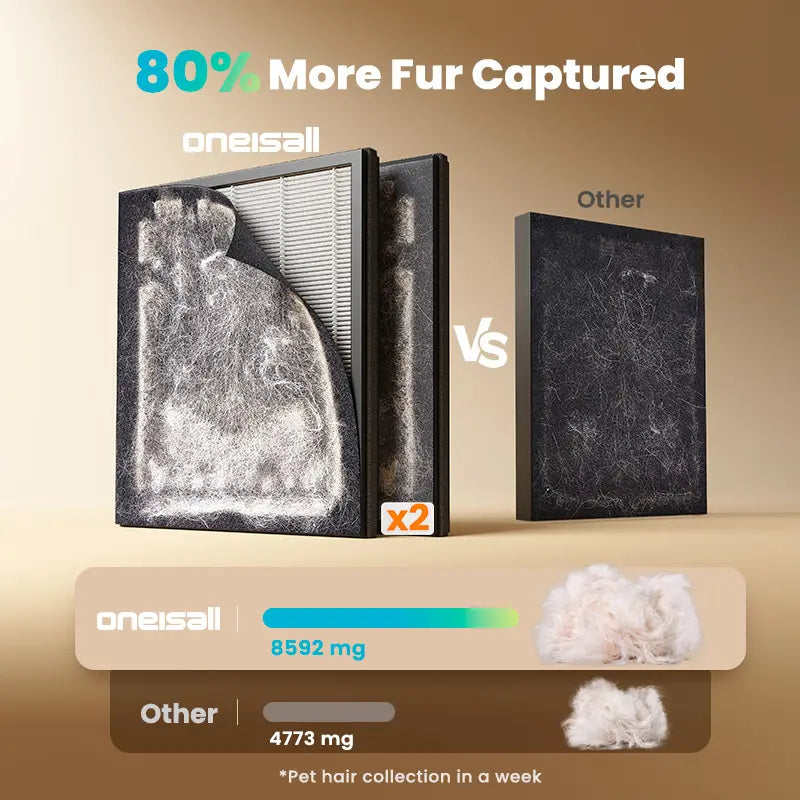 Engineered with high-performance dual-side air inlets to aggressively capture floating pet hair and dander before they settle on your furniture.