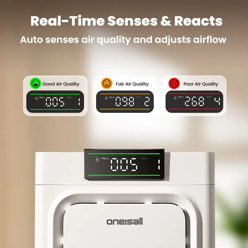 Our smart PM2.5 sensor constantly monitors your air, automatically adjusting fan speeds to maintain a healthy environment for you and your pets.