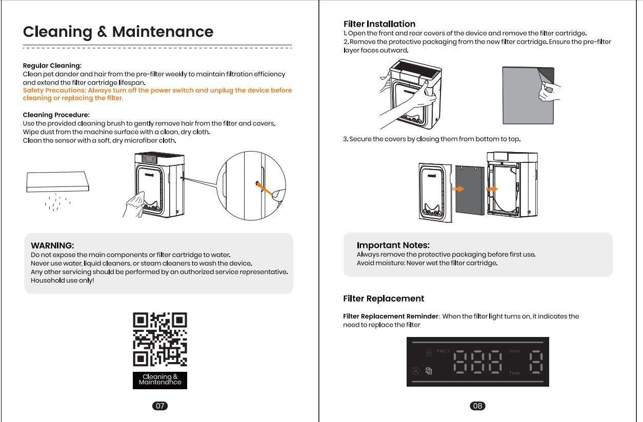 Get started instantly with a complete set: the Pet Pro Purifier, 2 H13 HEPA filters, 2 washable pre-filters, and a professional cleaning brush