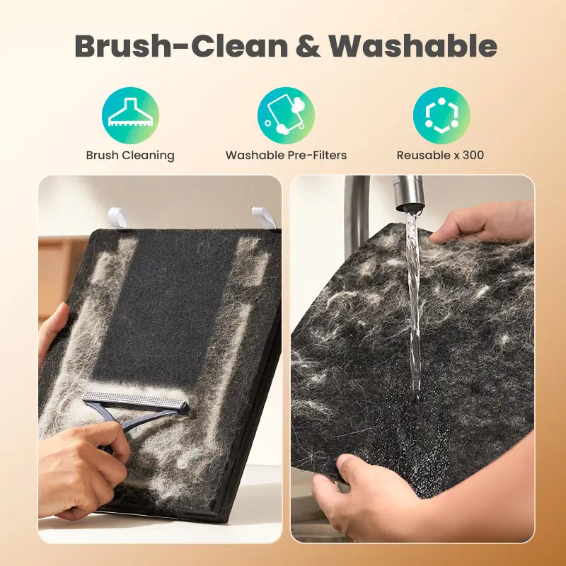 Reduce waste and save money. Simply brush or wash the reusable pre-filters to keep your unit running like new—no hidden costs